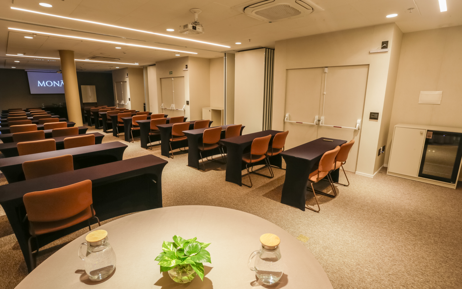 Oferecemos soluções sob medida que refletem suas necessidades, sempre com atenção minuciosa aos detalhes. Seja para um encontro corporativo estratégico, um treinamento envolvente ou uma ocasião especial, cada evento no Monã Hotel é uma criação única, planejada para surpreender e superar expectativas.Nossos ambientes cuidadosamente preparados para entretenimento e negócios, combinados com um serviço impecável e personalizado, garantem que cada momento seja inesquecível.