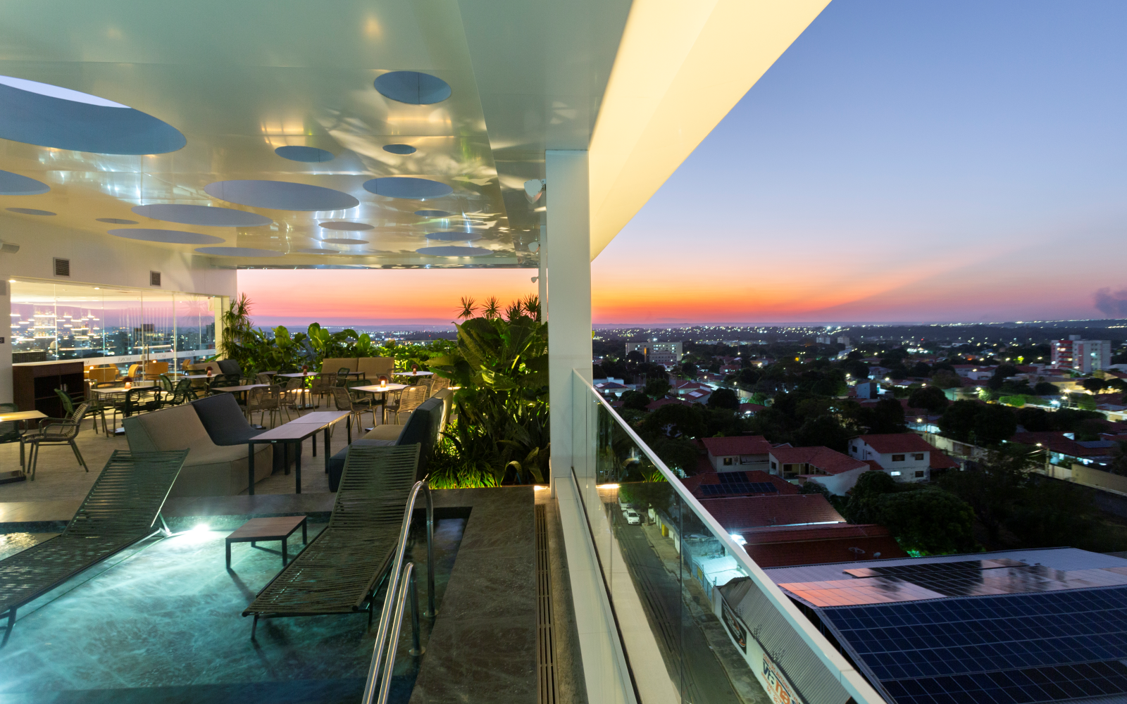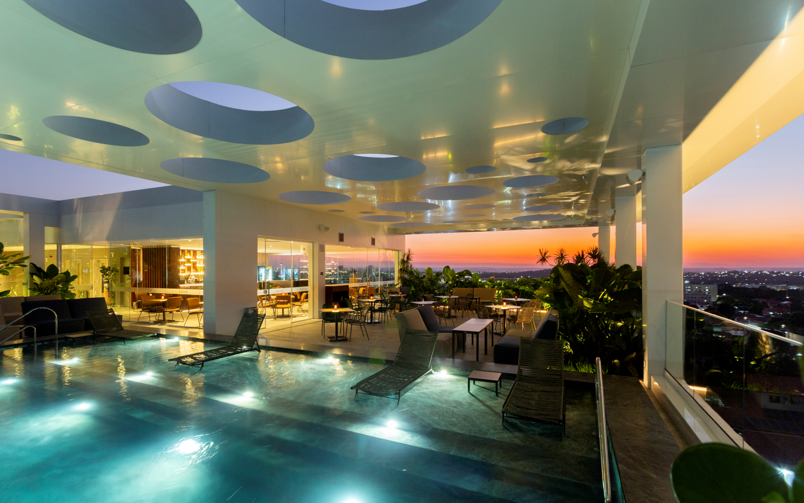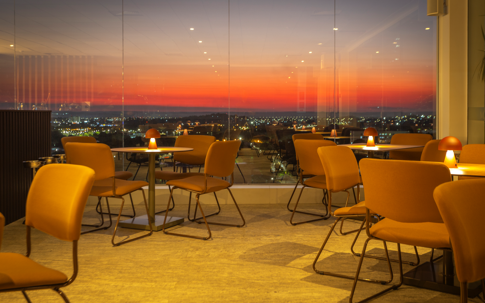 Localizado na cobertura, nosso rooftop exclusivo oferece drinks autorais e uma vista incrível da cidade. O cardápio leve, com entradas e petiscos, harmoniza perfeitamente com o ambiente sofisticado e aconchegante.