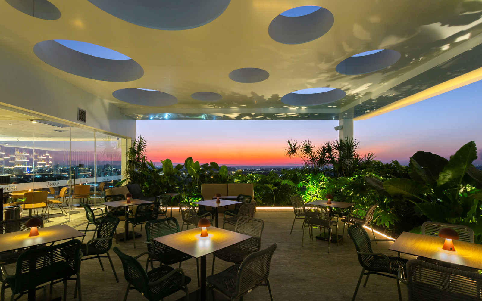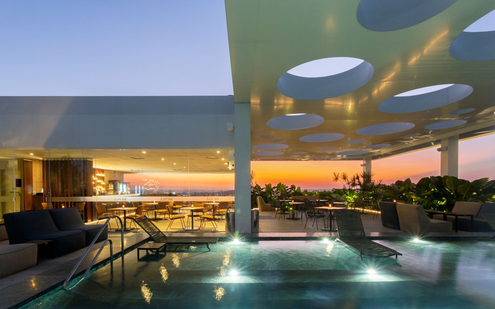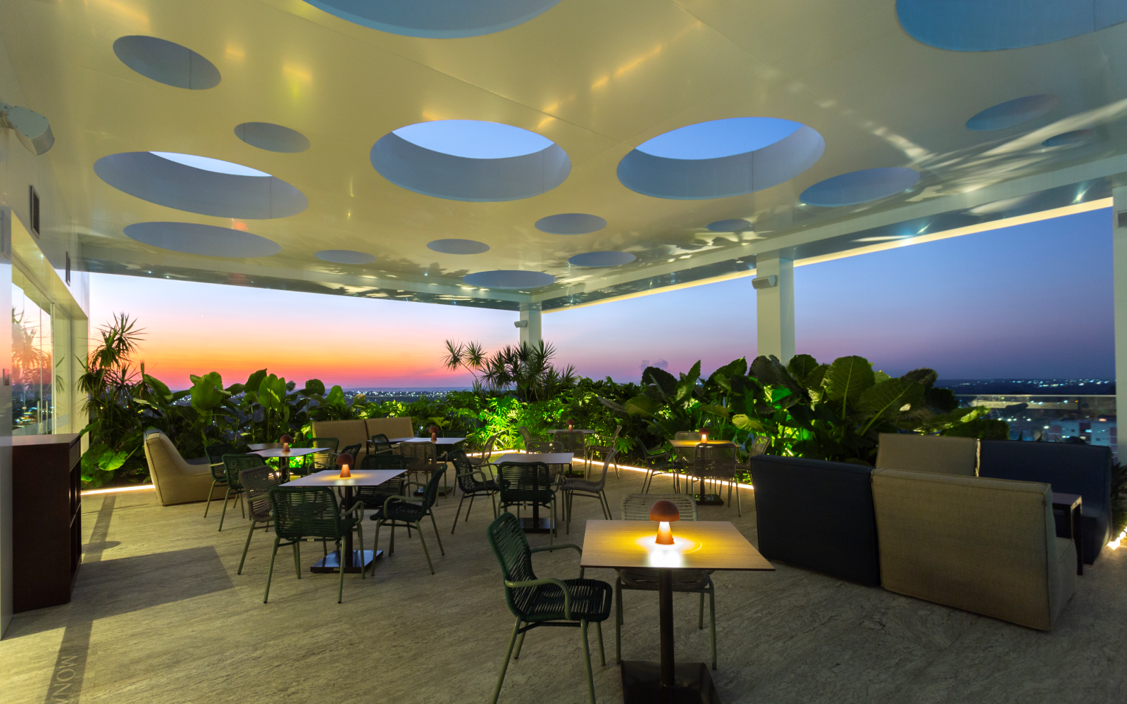 Localizado na cobertura, nosso rooftop exclusivo oferece drinks autorais e uma vista incrível da cidade. O cardápio leve, com entradas e petiscos, harmoniza perfeitamente com o ambiente sofisticado e aconchegante.